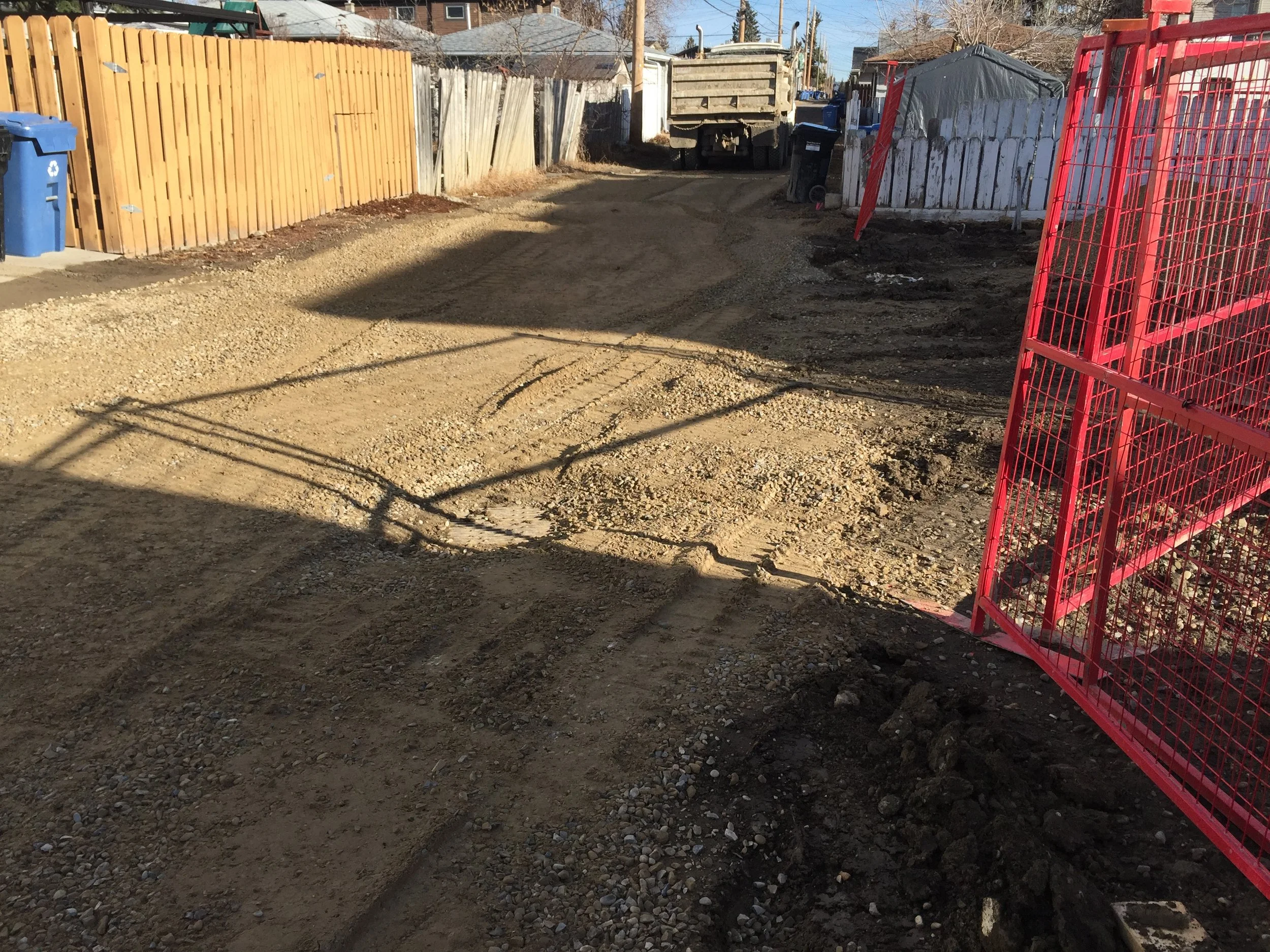 At this point we went ahead and fixed the alley despite concern that fixing it could be worse somehow. Maybe the City would come back and say the wrong type of crushed material was used and it needs removed (we used 25 mm road crush as we were told). Or the City will decide to come and fix it anyway, even though it is already dealt with.